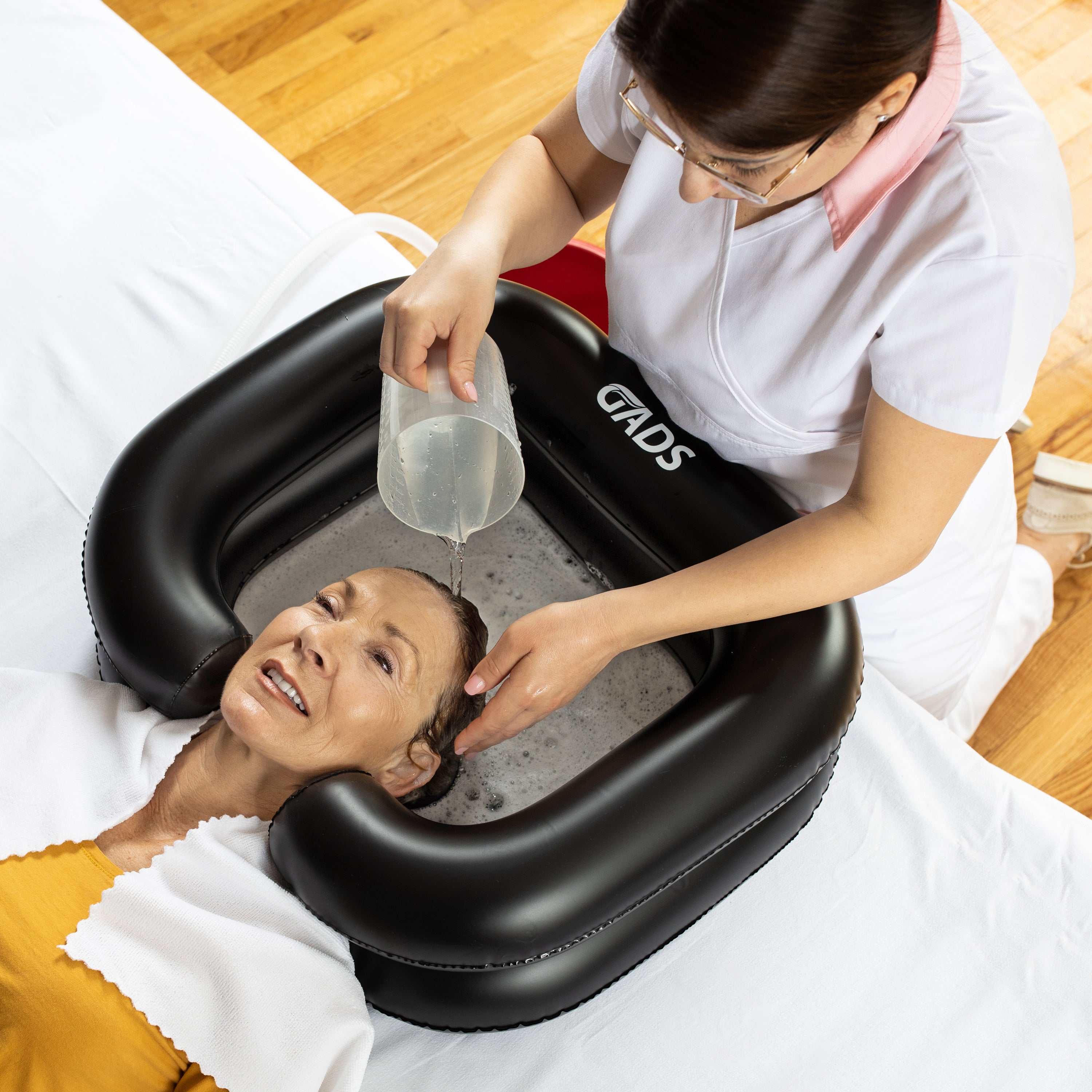 My wife had an accident and is stuck in bed for a few weeks. She was miserable not being able to wash her hair. This worked great!