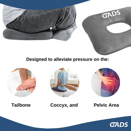 Coussin médical GADS pour le coccyx : confort ergonomique pour les hémorroïdes, après une intervention chirurgicale, pendant la grossesse et pour soulager la pression.