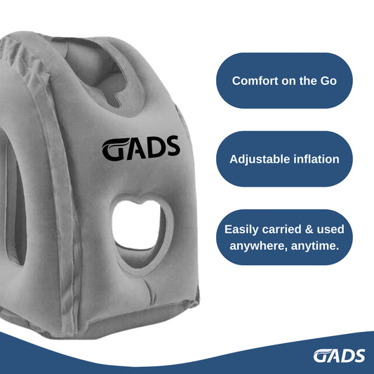 Oreiller de voyage ergonomique médical GADS - Support cervical gonflable pour les voyages en avion, en voiture et en train - Oreiller compact, fermeté réglable, portable avec housse en velours doux