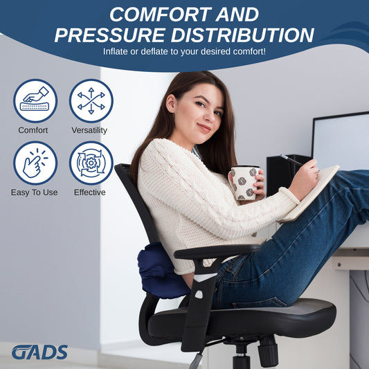 Oreiller lombaire gonflable médical GADS pour avion, voiture, bureau - Support dorsal compact - Portable, sangle réglable - Petit oreiller lombaire pour voyage, rangement facile